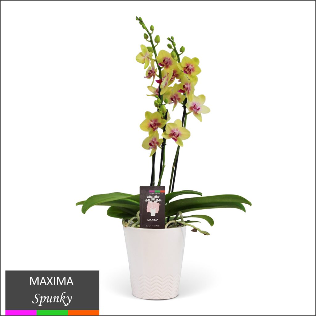A distinct category, Maxima orchids are carefully selected to ensure rich blooming in vibrant colours. Its exclusive colour range includes whites, purples, yellows and pinks. Unassuming yet provocative, Maxima boasts abundant blooms and moderate height, making it the perfect companion for your dinner table, kitchen island or console table.
