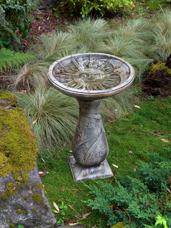 Attract birds to your garden by adding a birdbath! This Astronomy Birdbath is the perfect addition to your garden and has a unique Astronomy design in the basin. Bird baths are the perfect spot for birds in your area to land, hydrate and groom their feathers. This birdbath is made of a concrete blend that is durable, lighter than regular concrete and weather worthy*.