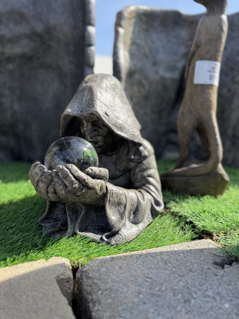 This garden statue is made of a concrete blend that is durable, lighter than regular concrete, weather worthy and built to withstand cold Canadian winters.