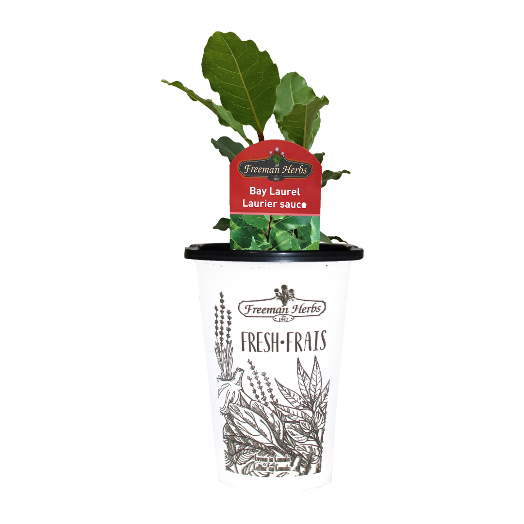 Grow outdoors in the summer in full sun, in soil with great drainage. Bay Laurel is an excellent plant to grow in containers! Use bay leaves in soups, stews, and French cooking.