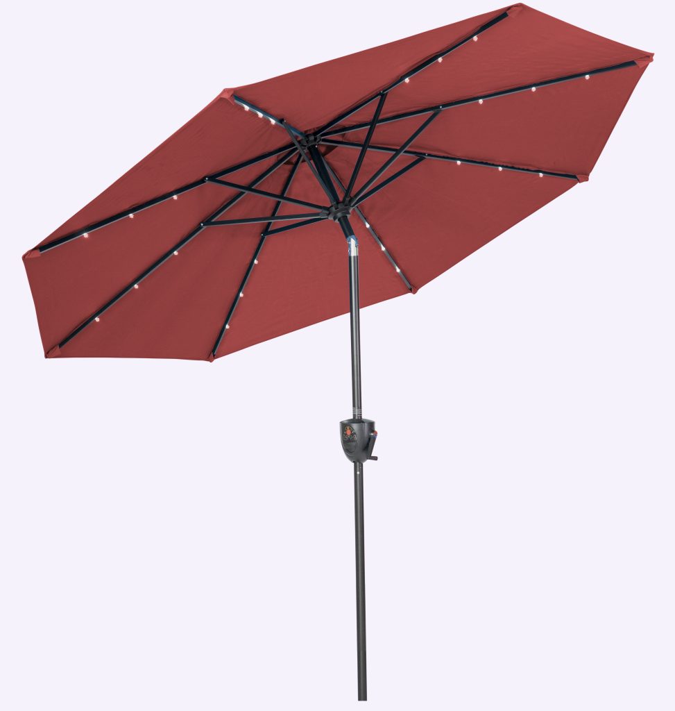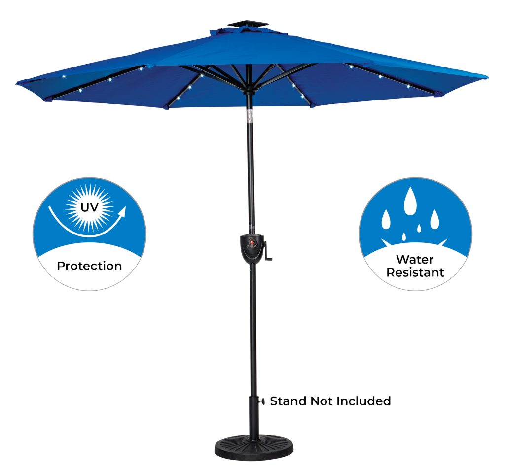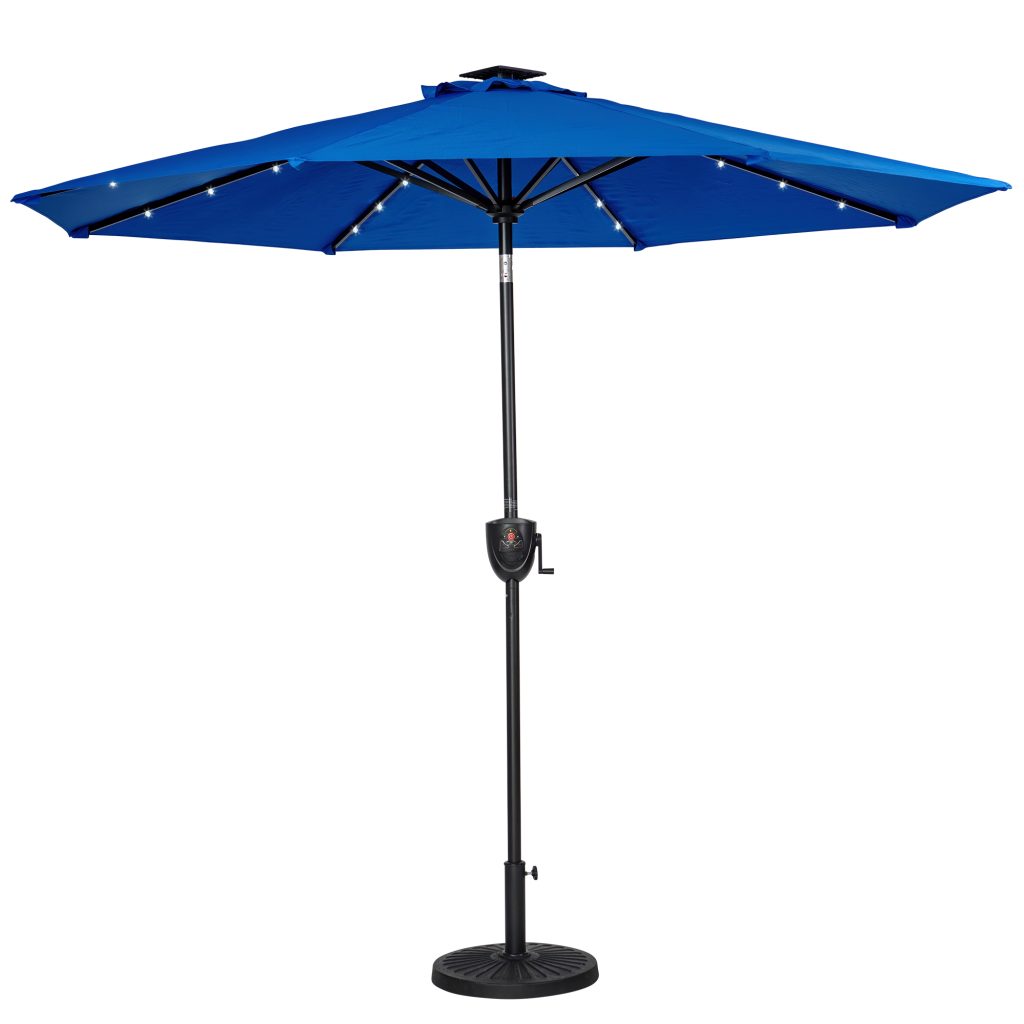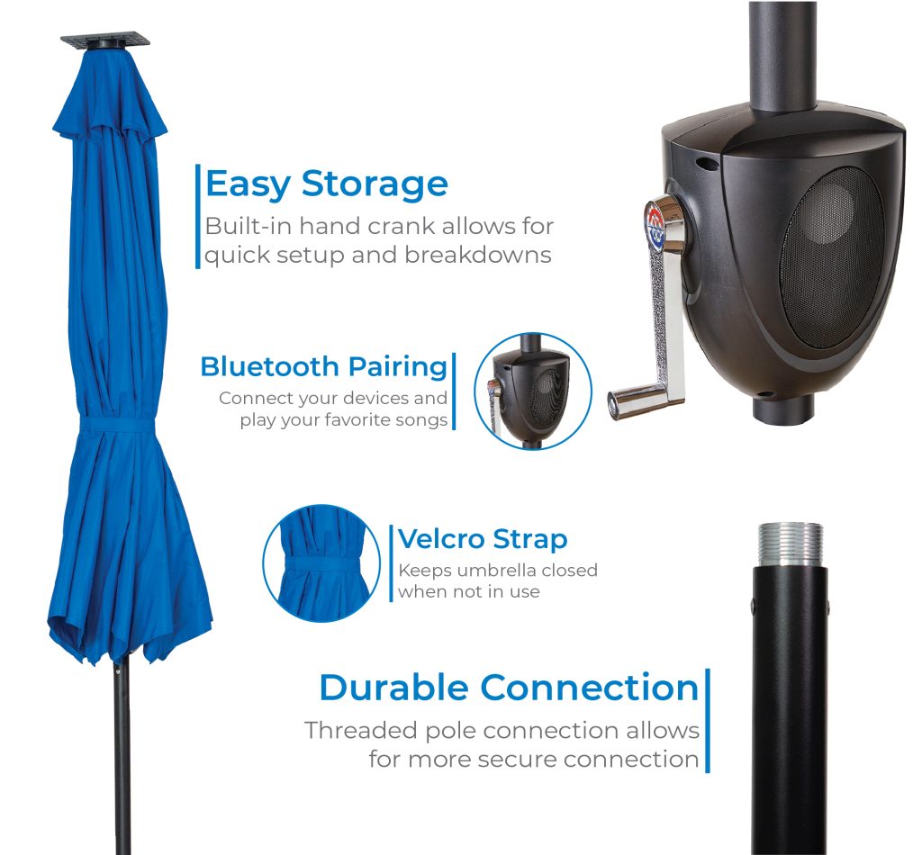 9′ Round Solar Lighted Umbrella with Built-In Bluetooth Speaker – Available in 3 colours