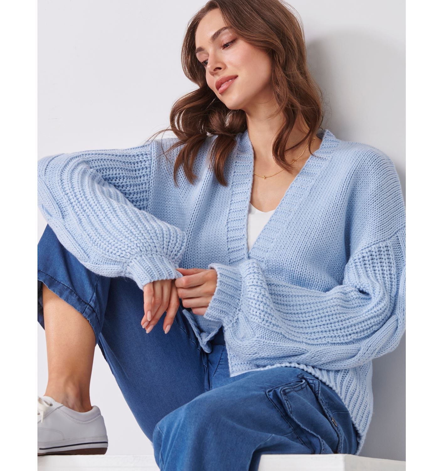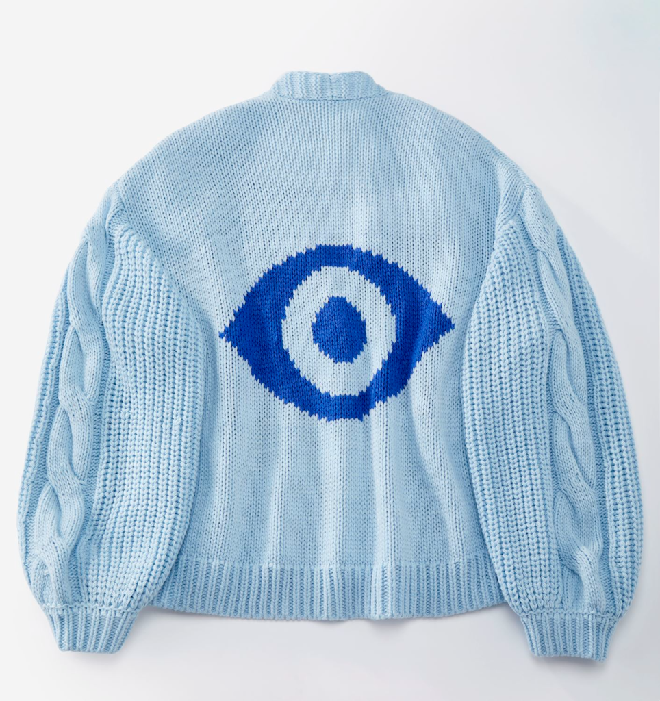 Charlie Paige Dreamy Knit Evil Eye Cardigan (Light Blue)