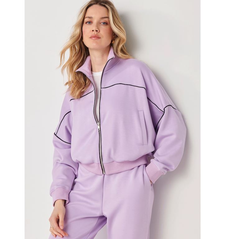Charlie Paige Mock Neck Dolman Zip Jacket (Lilac)