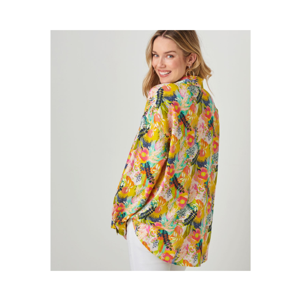 Charlie Paige Relaxed Linen Blend Shirt (Citrus Garden)