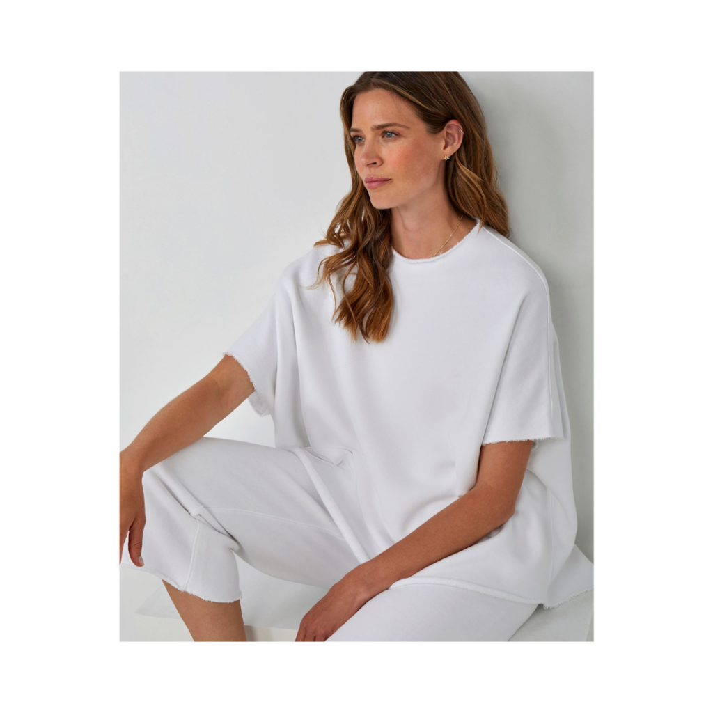 Designed with comfortable weekends in mind, this Relaxed Short Sleeve Tunic is made from soft, breathable cotton and is a perfect staple for the summer season. With classic clean lines and a chic silhouette, this tunic features oversized Dolman sleeves, a scoop neck, and slightly rolled raw edges for an elevated off-duty look.
