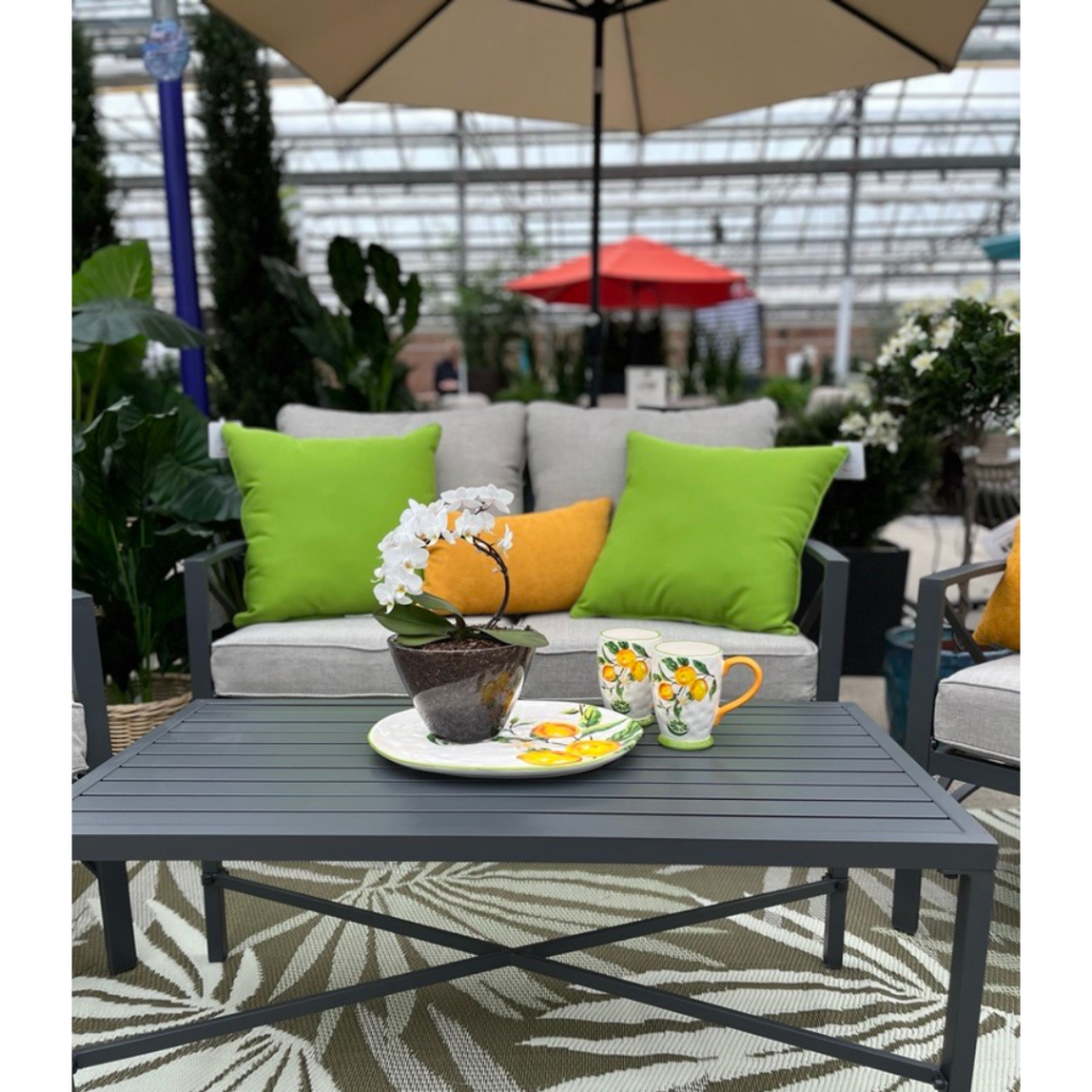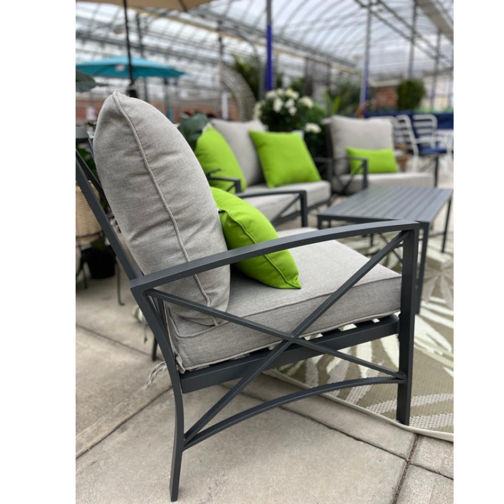 Transform your outdoor space with this elegant and contemporary patio conversation set, perfect for relaxing, entertaining, or enjoying a quiet evening under the stars. Crafted for both style and comfort, this 4-piece lounge set is designed to enhance any patio, deck, or garden with its sleek powder coated aluminum frame and plush, all-weather cushions.