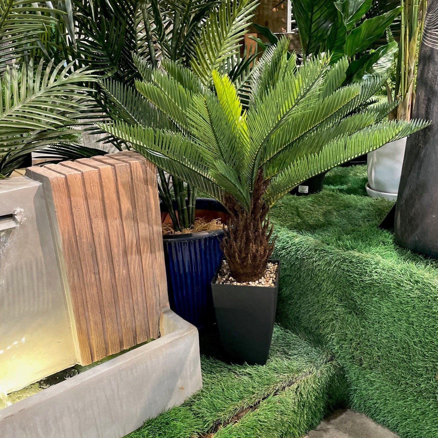 | This artificial Cycas Palm features small, intricate details in its palm leaves, complemented by a beautifully textured and realistic trunk. Available in two sizes, it makes a striking addition to any decor, bringing natural elegance to any space.