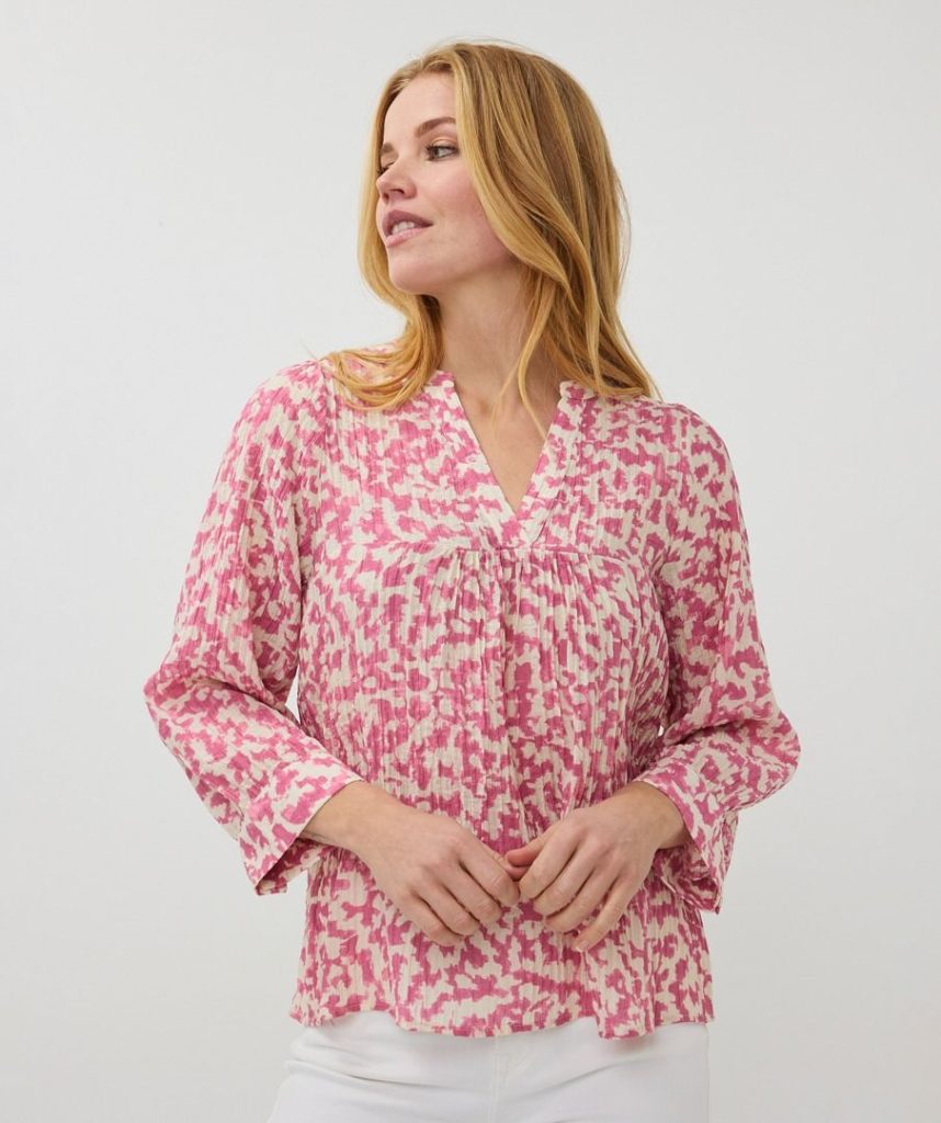 The Blouse Floral Retreat by Esqualo has an airy fit and a refined floral print in soft shades. The subtle pleats and V-neck give a feminine touch, while the supple fabric ensures ultimate wearing comfort. Perfect to combine with jeans or a skirt for an effortlessly stylish look!