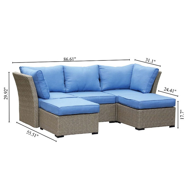 Outdoor entertainment just got better with our Fairview 5-Piece Patio Sectional Set. Made from a powder-coated steel frame with all-weather resin wicker and olefin cushions, expect your outdoor patio sectional to provide endless years of enjoyment. This set includes one left arm, one right arm, one armless middle seat, and two ottomans. The Lakeview is adaptable to any living space and is designed to provide optimal comfort.