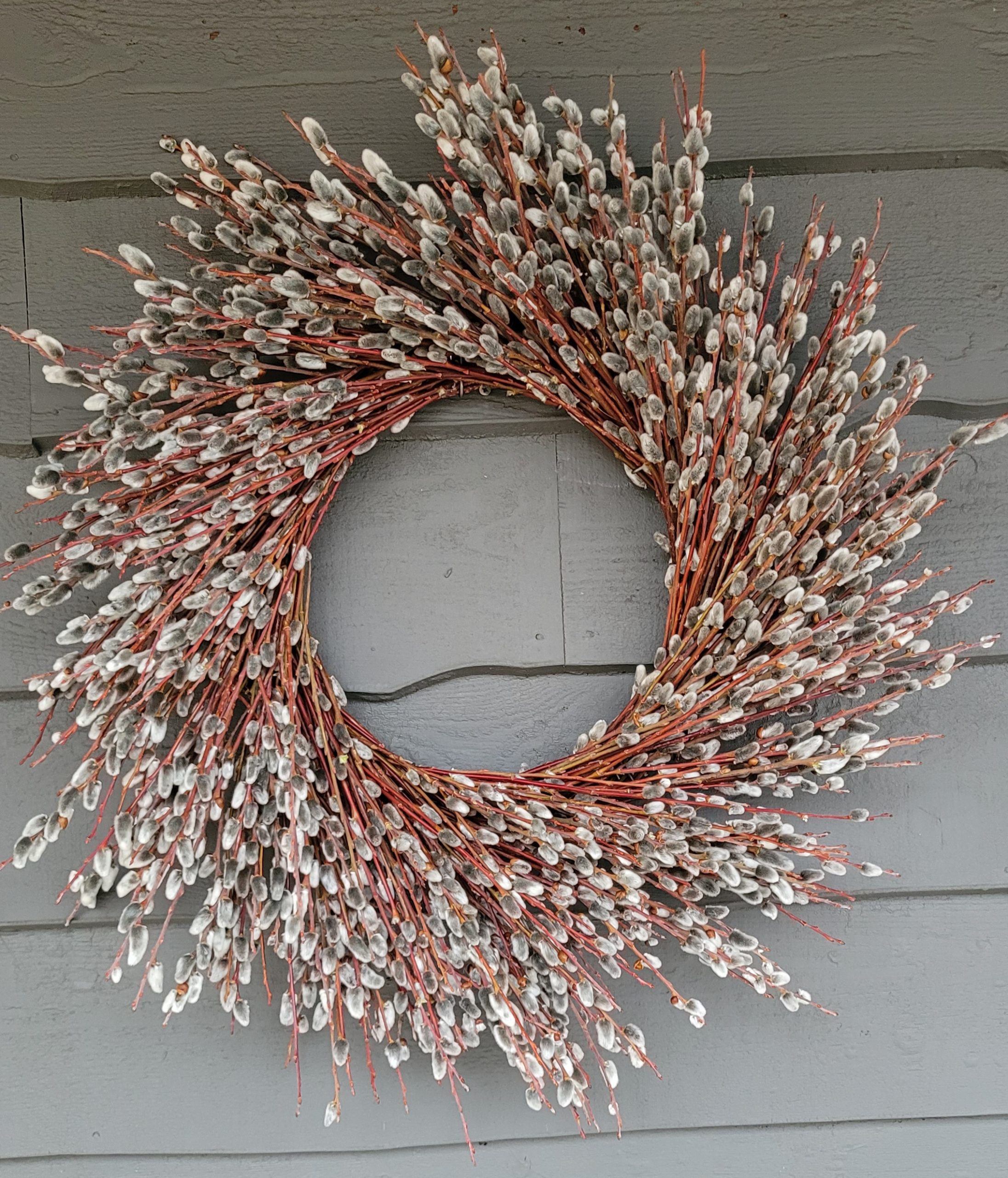 Fresh Pussywillow Wreath. 28″ made by hand in Port Hope, Ontario using 180 freshly harvested stems.