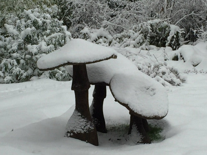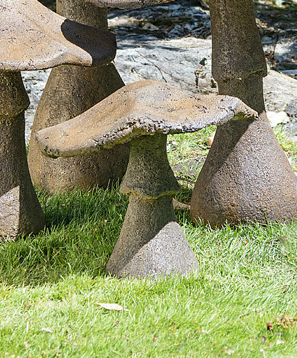 The Garden Mushroom Statue is made of a concrete blend that is durable, lighter than regular concrete, weather worthy and built to withstand cold Canadian winters.