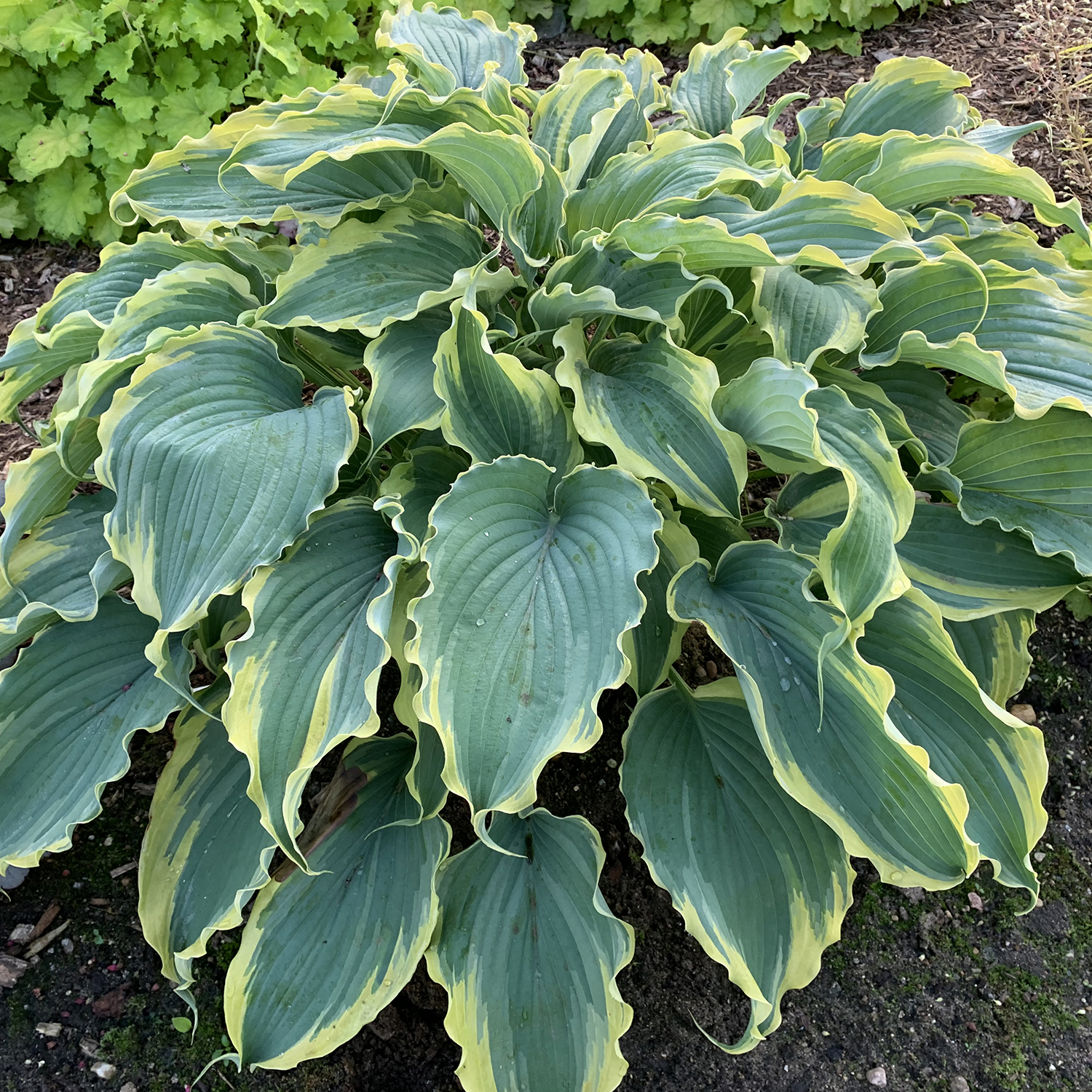 Hostas are an easy plant for the shade and this PW selection is a great addition. Voices in the Wind has beautifully ruffled leaves with wedge-shaped leaves. Blue-Green leaves have wavy creamy yellow margins. Pale lavender flowers are attractive to hummingbirds. Grows 17″ high and 36″ wide. Part shade to Full shade.