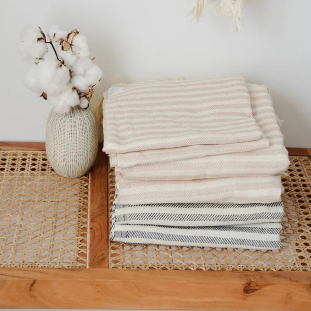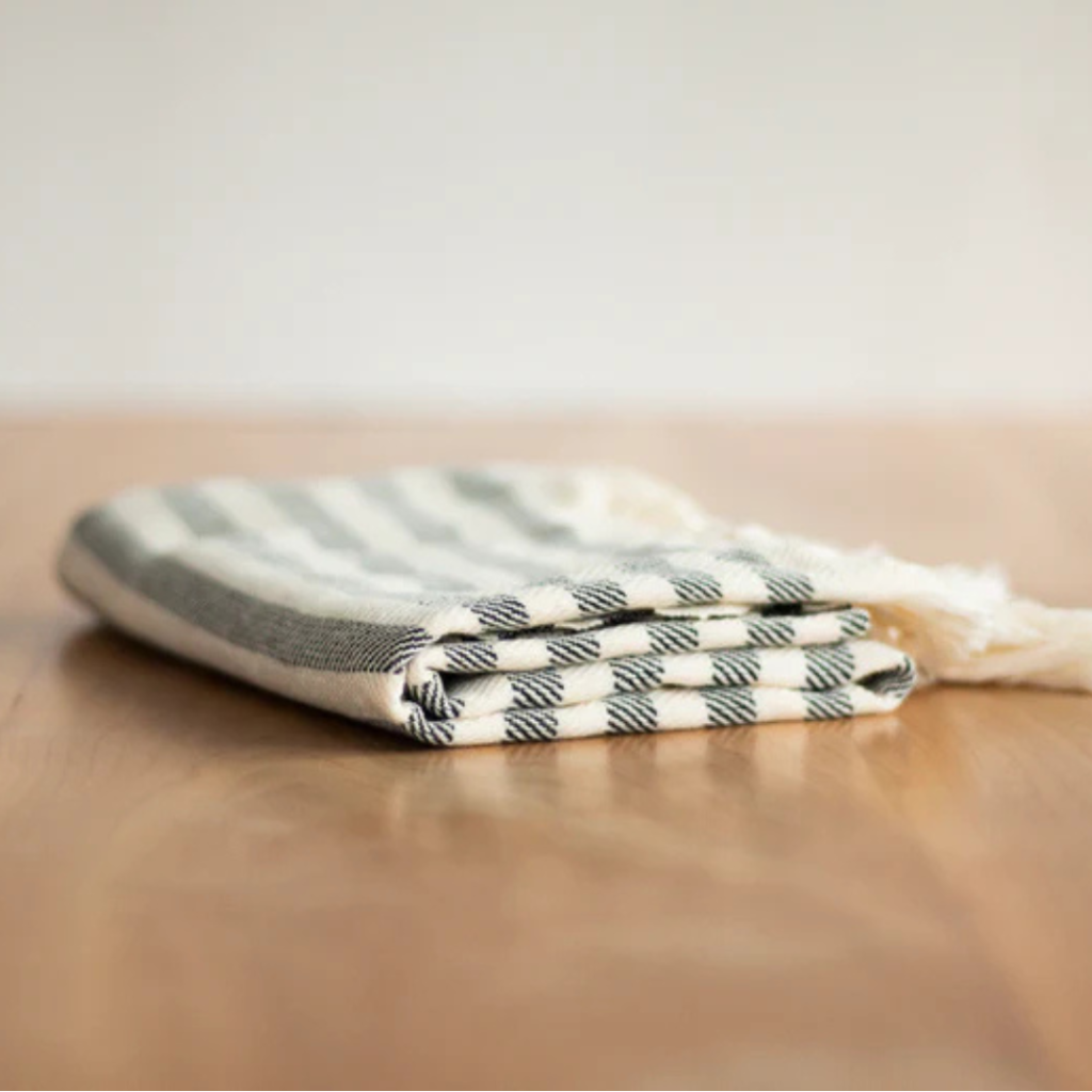 Beautifully hand-loomed by talented Turkish artisans, our Turkish Hand Towel is great for hands or hair, in the kitchen or bath. Made from quality 100% Turkish cotton, the unique weave dries quickly and is naturally antibacterial so it will never have that damp towel smell. This towel makes a beautiful decorative piece for a guest bathroom, but is also durable enough to use every day in the kitchen. House of Jude’s Hand Towels are designed to layer beautifully over the coordinating Oversized Towels, and are the perfect size for tossing up your hair after a shower. They compliment any home’s décor and make the perfect host or housewarming gift. The more you wash this towel, the softer and more absorbent it will become. Because they are hand-loomed, natural variations may be found in the towels, making each one unique and beautiful.