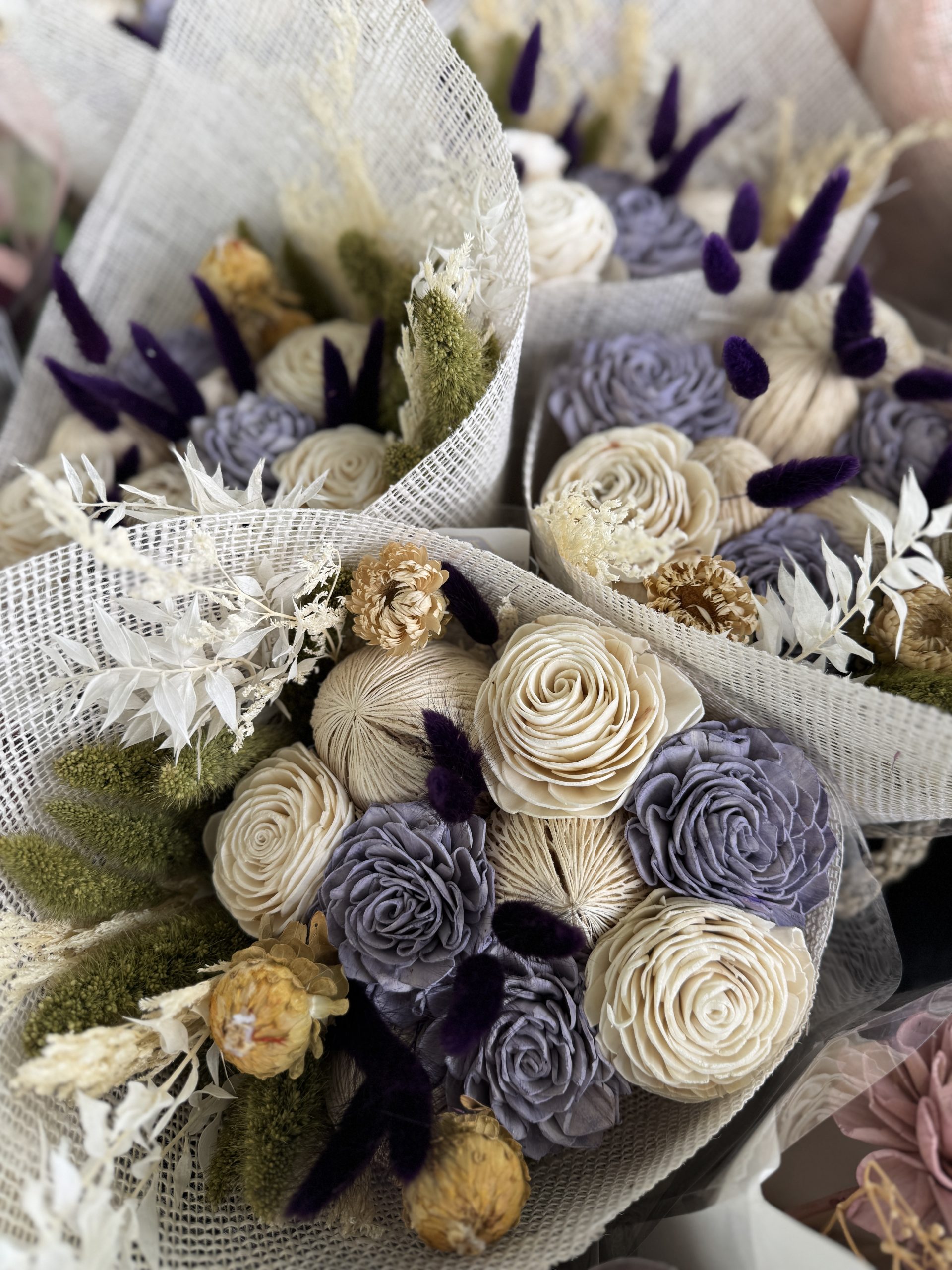 These dried and curated bouquets will add bright vintage style for your spring decorating. All natural flowers dried for long lasting appeal.
