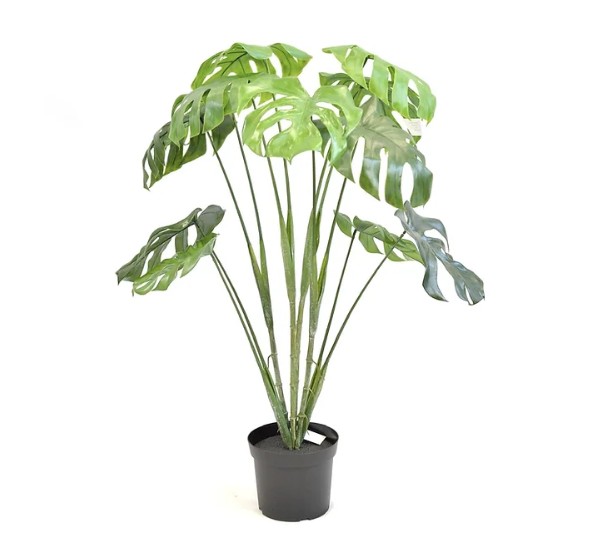 | This artificial Monstera leaf plant, measuring 28″ W x 37″ H with a pot size of 8″ W x 6″ H, is a classic favorite that will effortlessly brighten any space. Its vibrant, tropical leaves bring a refreshing, lively vibe to your decor. Pair it with any pot of your choice to enhance your design and infuse a touch of the tropics into your home or office.