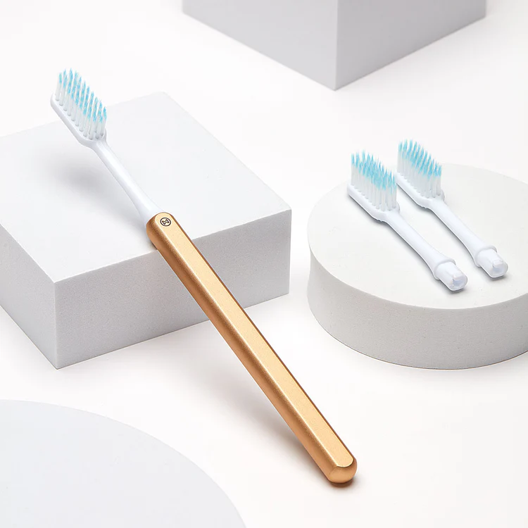 Nada is an aluminum handle you keep for life and premium brush heads we take back and have recycled into plastic pellets.