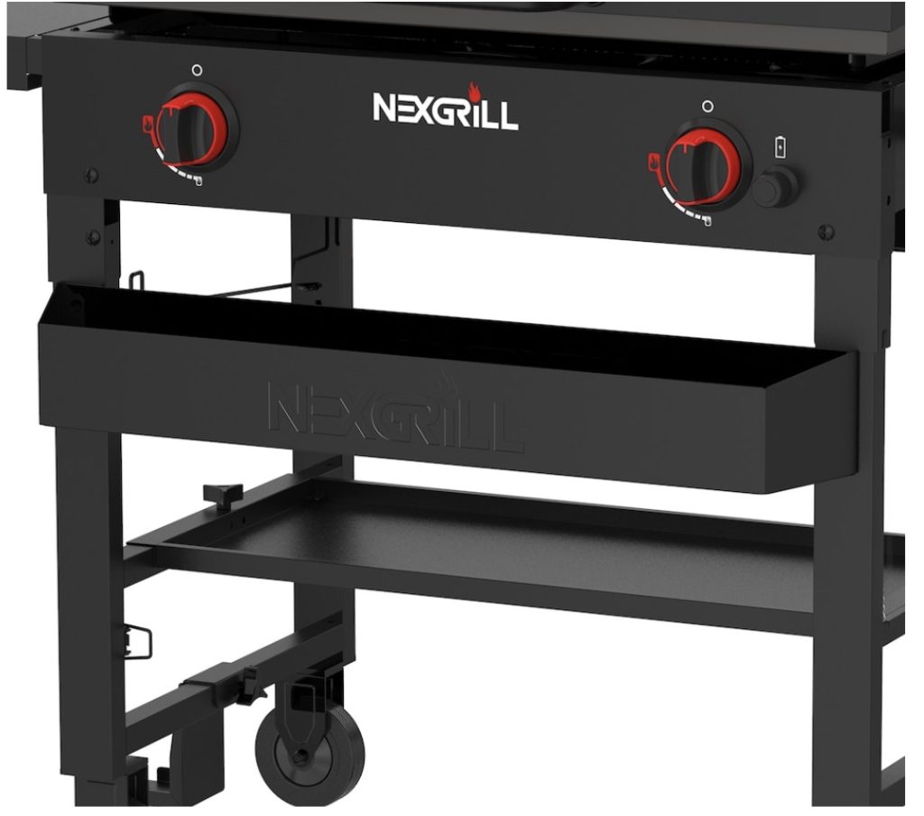Meet the most recent addition to the Nexgrill family, the 29-inch 2 Burner Propane BBQ with Griddle Top and Lid. This multi-use grill is perfect for preparing breakfast, lunch and dinner. It incorporates a pre-seasoned griddle that offers 514 sq. inch of total cooking space, high powered burners that offer 38,000 BTUs each and an electronic ignition system for no hassle lighting. The left side table adds a convenient prep area, while the easy to collapsible cart with wheels make transporting a breeze. We have also made cleaning easy and stress-free with the rear access pull out grease box. Make your next grill a Nexgrill.