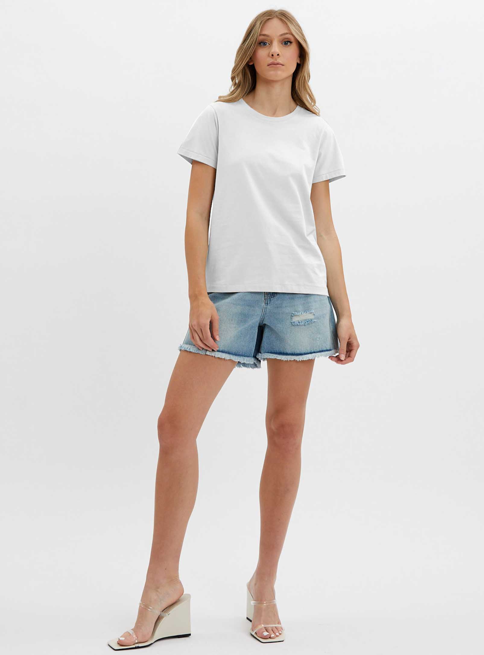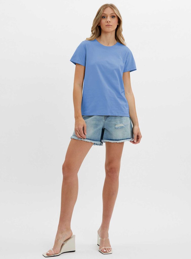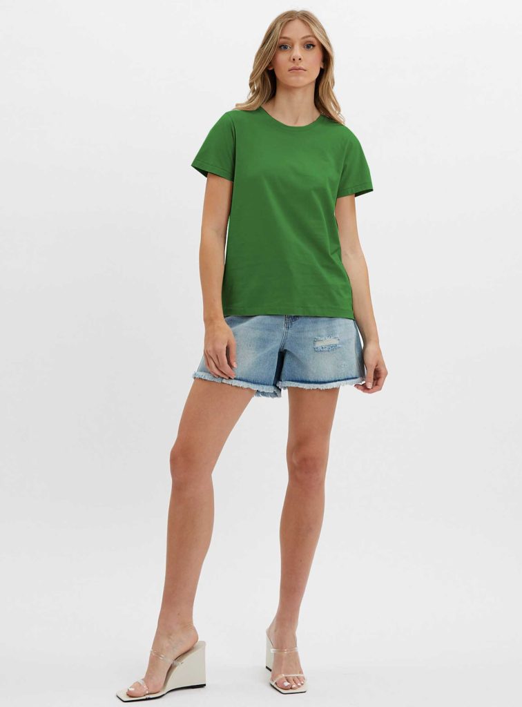 This short sleeve t-shirt is a versatile and essential piece for any wardrobe. The basic design and crewneck style make it suitable for both casual and formal occasions. The straight cut and assorted colors provide a wide range of options to match any outfit or personal style. The comfortable fabric and breathable design make it perfect for warm weather or active lifestyles. Pair it with jean shorts or a skirt for a stylish and comfortable look
