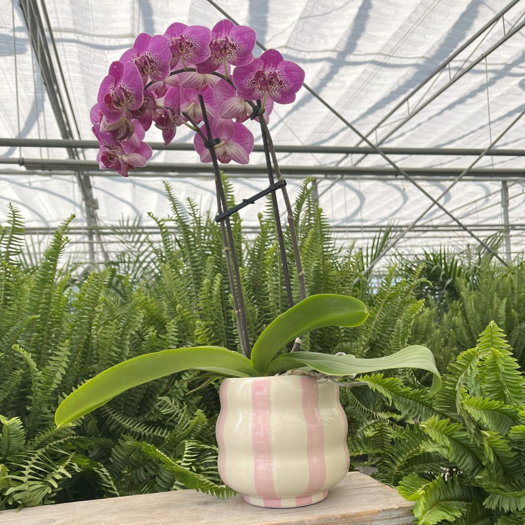 Bring a colorful pop of pink to a your plant collection with the tonal Pink Striped Collection. Featuring a glossy finish & cheery pink on pink vertical stripes across the body, these modern, versatile vessels can be styled with drop-in plants or florals.