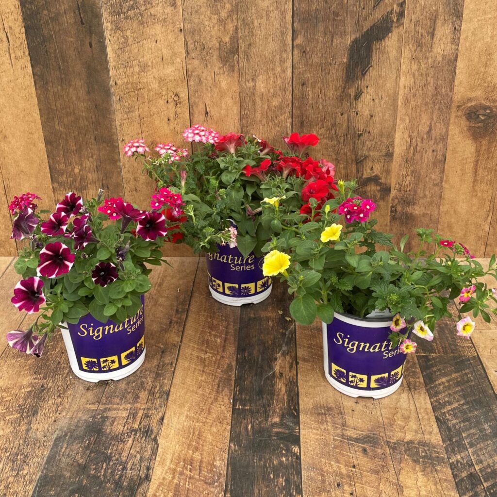 The TERRA Production team combines a sweet, colour-coordinated blend of seasonal flowers in a single 6″ pot, making it easy to fill a basket, container, or garden. Pop them into pots, or plunk into the garden for a fast fix of interesting colour and texture throughout the summer! Mixes offer 3 varieties in a pot in a range of colours.