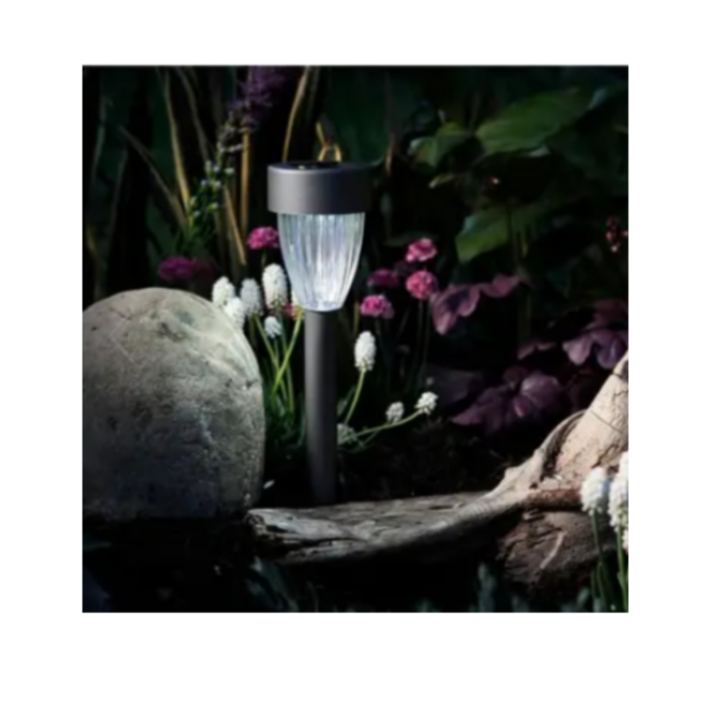 This Solar Pathway light features contemporary, simplistic styling combined with durable metal and plastic construction; with a gun metal finish and clear lens that illuminates with 1 white LED (3 lumens) of light output.