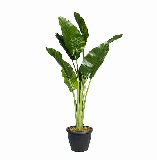 | Standing 5 feet tall, this artificial Traveler’s Palm is the perfect trendy addition to any room. With its tall stems and large, vibrant green leaves, it effortlessly breathes life into your space, filling the room beautifully. Timeless in style, it complements any design with ease.